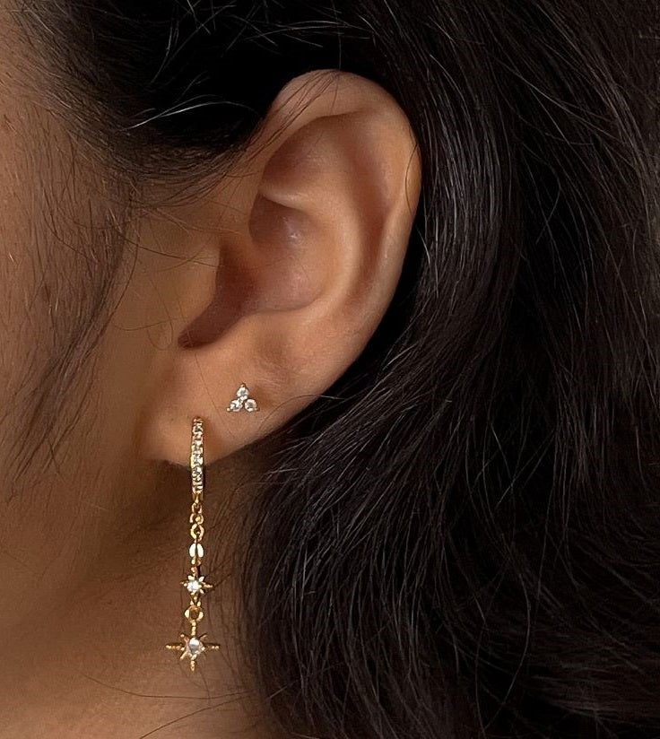 Boucle scintillante, avec ses deux étoiles suspendues à une créole, pour briller en toute circonstance!